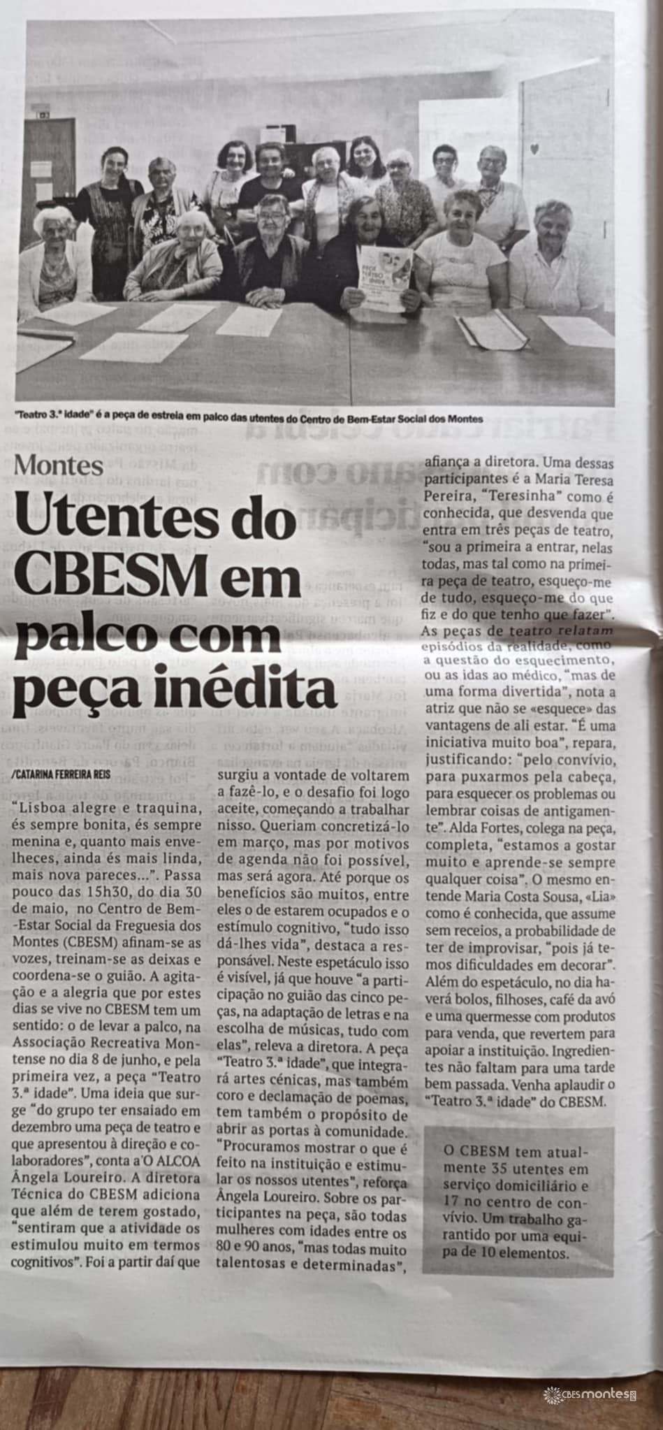 O Centro de Bem Estar Social da Freguesia dos Montes teve recentemente o prazer de ver o seu trabalho reconhecido no jornal regional O Alcoa.